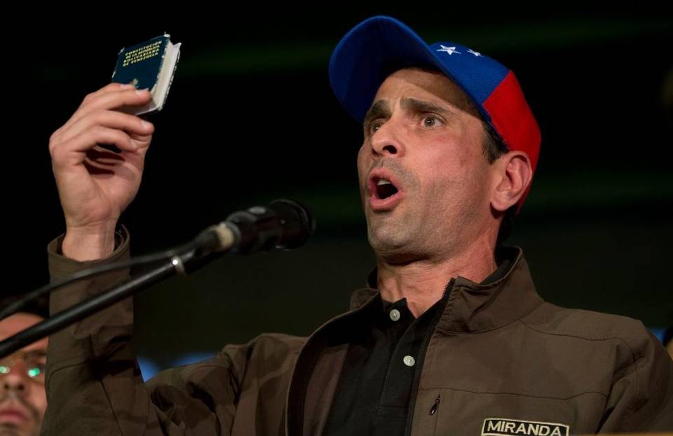 Capriles, gobernador del estado de Miranda y ex candidato presidencial que perdió contra Maduro en una cuestionable elección en 2013, fue inhabilitado para postularse a cargos públicos durante 15 años.