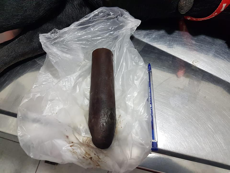 Y contó que, ella revisó al animal e intentó tratarla con una sonda, pero no podía ingresar. Entonces, decidió sedarla. Fue entonces que detectó un cuerpo extraño en el interior de su vagina.