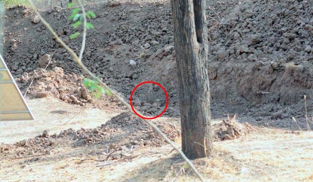 Se trata de un árbol en un terreno arenoso en el que se encuentra un leopardo, casi imposible de ver.