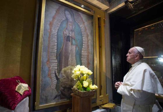 La historia dice que la advocación de la Virgen de Guadalupe comienza un sábado de 1531 a principios de diciembre, un indio llamado Juan Diego, iba muy de madrugada del pueblo en que residía a la ciudad de México a asistir a sus clases de catecismo y a oír la Santa Misa. Al llegar junto al cerro Tepeyac escuchó una voz que lo llamaba por su nombre. Él subió a la cumbre y vio a una Señora de sobrehumana belleza, cuyo vestido era brillante como el sol, la cual con palabras muy amables y atentas le dijo: "Juanito: yo soy la siempre Virgen María, Madre del verdadero Dios, por quien se vive. Deseo que se me construya aquí un templo, para en él mostrar y prodigar todo mi amor, a todos los que me invoquen y en Mí confíen. Ve donde el Señor Obispo y dile que deseo un templo en este llano”. De regresó a su pueblo Juan Diego se encontró de nuevo con la Virgen María y le explicó lo ocurrido. Esta vez el obispo, luego de oír a Juan Diego le dijo que debía pedir alguna señal que probara que era la Madre de Dios. Luego, Juan Diego, ante Monseñor Zumarraga, desplegó su manta y cayeron al suelo las rosas y en la tilma estaba pintada con lo que hoy se conoce como la imagen de la Virgen de Guadalupe. Viendo esto, el obispo llevó la imagen santa a la Iglesia Mayor y edificó una ermita en el lugar que había señalado el indio. Pío X la proclamó como "Patrona de toda la América latina”.