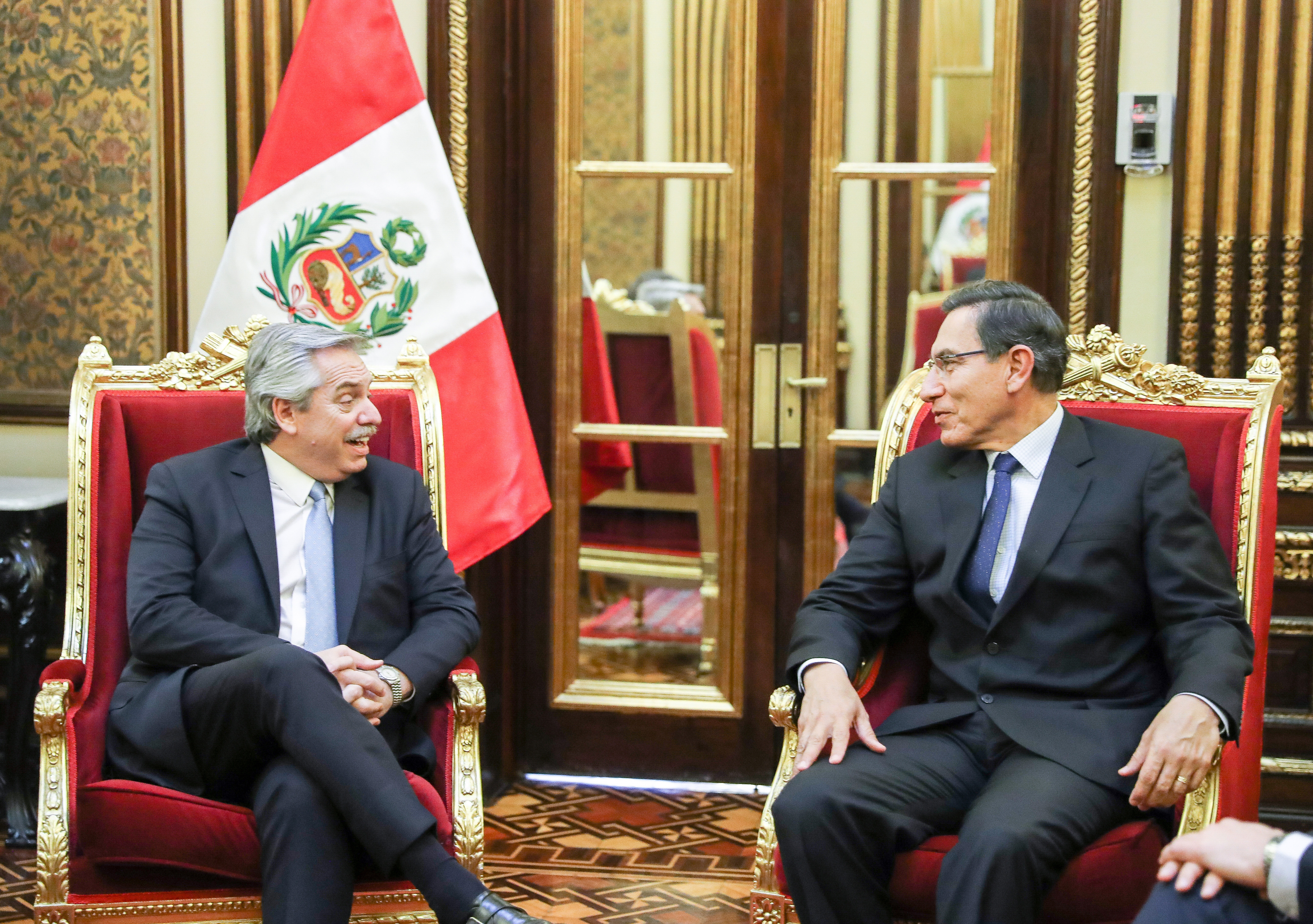 En la misma ruta. Vizcarra y Alberto charlaron durante una hora. El Presidente de Perú invitó a Alberto al festejo del Bicentenario en 2021.