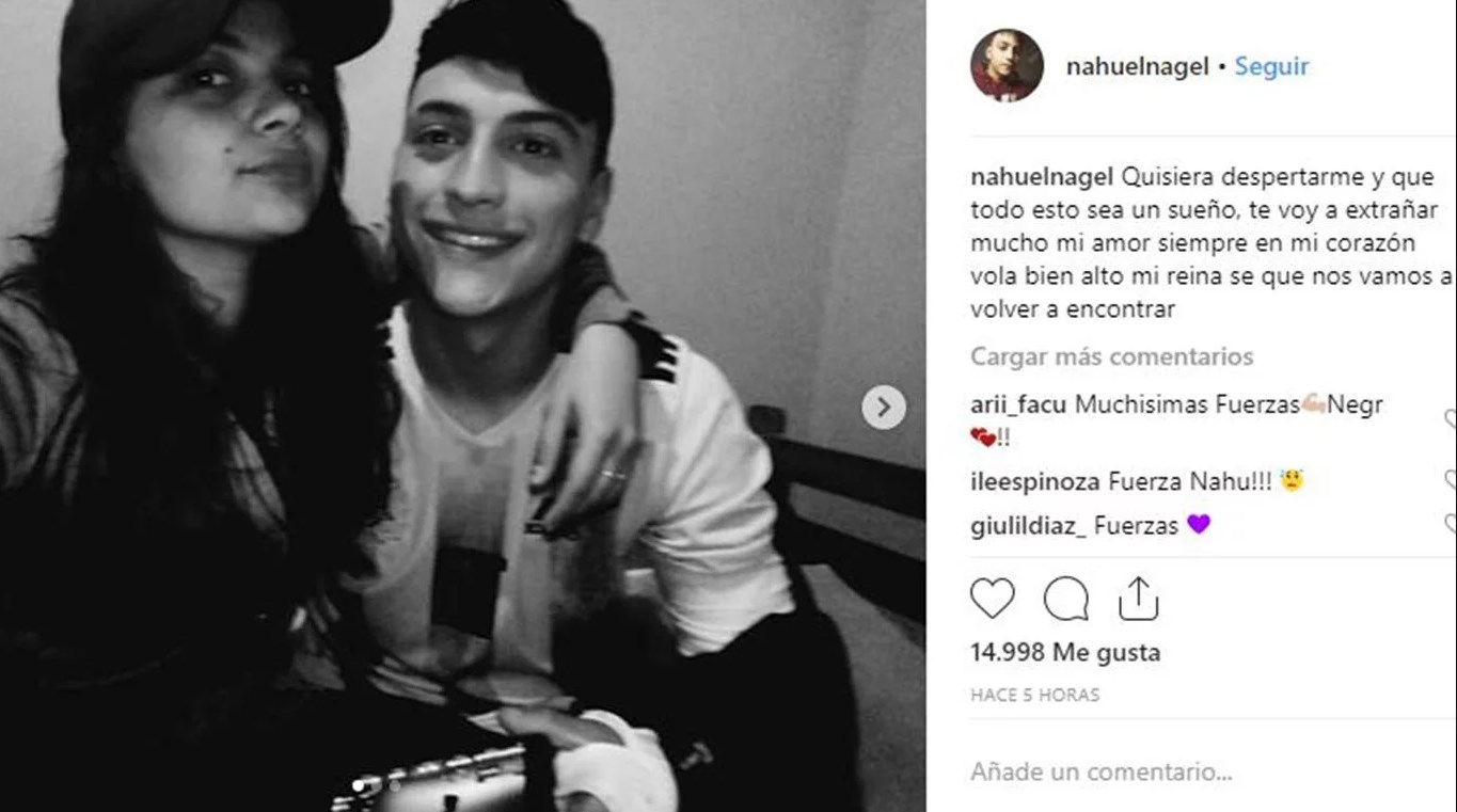 "Quisiera despertarme y que todo esto sea un sueño. Te voy a extrañar mucho mi amor. Siempre en mi corazón. Volá bien alto mi reina, sé que nos vamos a volver a encontrar", dice el posteo de Instagram que acompañó con una foto de la pareja.