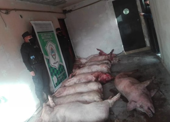 Esta situación fue advertida por los policías que acudieron y que intentaron detener las maniobras, pero al verse superados en número solo pudieron pedir refuerzos. Para evitar más problemas (algunos policías fueron amenazados con cuchillos) se efectuaron grabaciones en video para identificar a los autores, no obstante procedieron a la aprehensión de 20 personas mayores y 1 menor, y al secuestro de 3 chanchos vivos, 15 muertos y 7 vehículos.