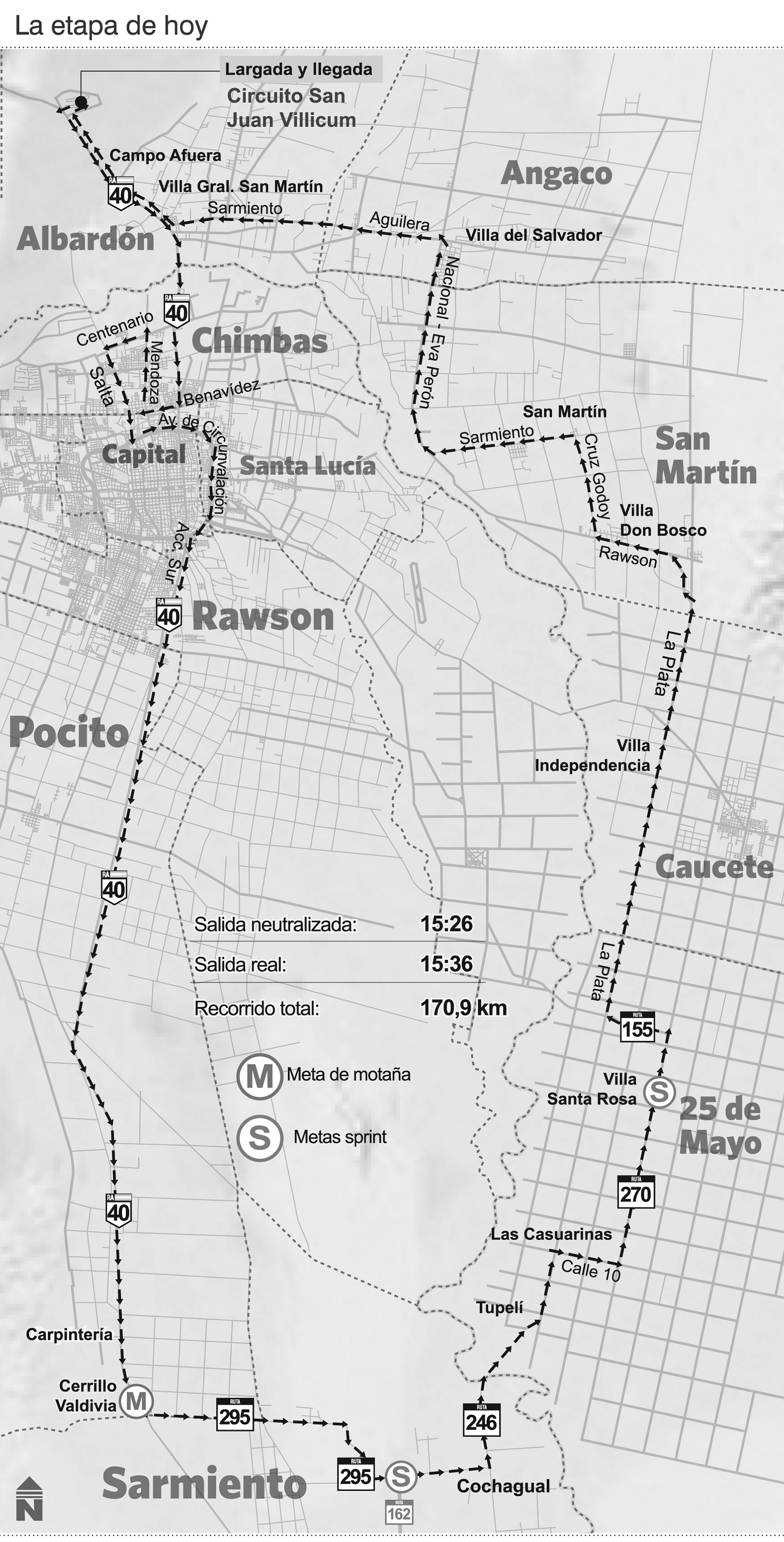 La etapa 3 de la Vuelta Internacional a San Juan recorrerá once departamentos de la provincia. Se esperan 170 kilómetros de mucha adrenalina con el final en el Circuito San Juan-Villicum.
