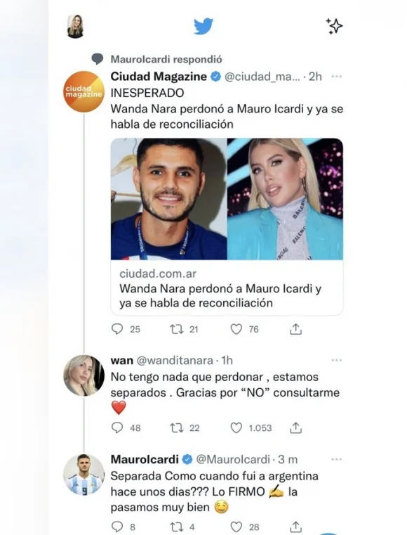 Todo comenzó cuando, a raíz de ciertos rumores de que Wanda podría reconciliarse con Icardi, el portal Ciudad Magazine elaboró una nota titulada: "Wanda Nara perdonó a Mauro Icardi y ya se habla de reconciliación".