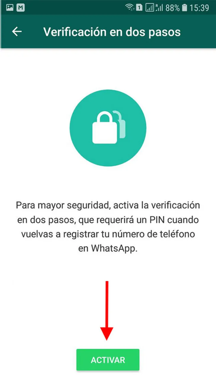 *Al entrar, verás un mensaje que te explica la dinámica de esta función: “Para mayor seguridad, activa la verificación en dos pasos, que requerirá un PIN cuando vuelvas a registrar tu número de teléfono en WhatsApp”. Únicamente hay que clicar sobre ‘Activar’.