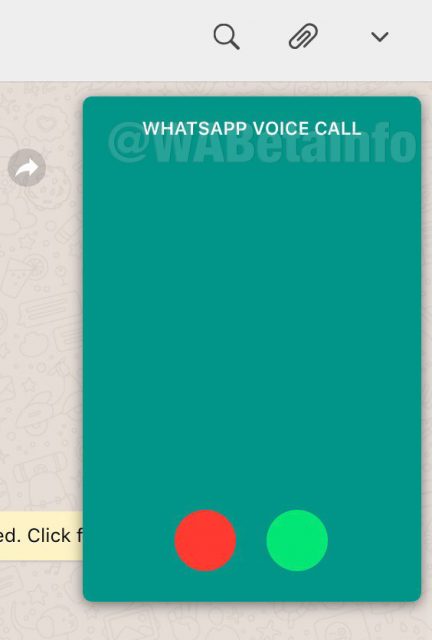Como se observa, la imagen revela la función en desarrollo “Llamada de voz”. Si el usuario selecciona la opción, Whatsapp Web abrirá una ventana emergente donde iniciará una llamada con el interlocutor.