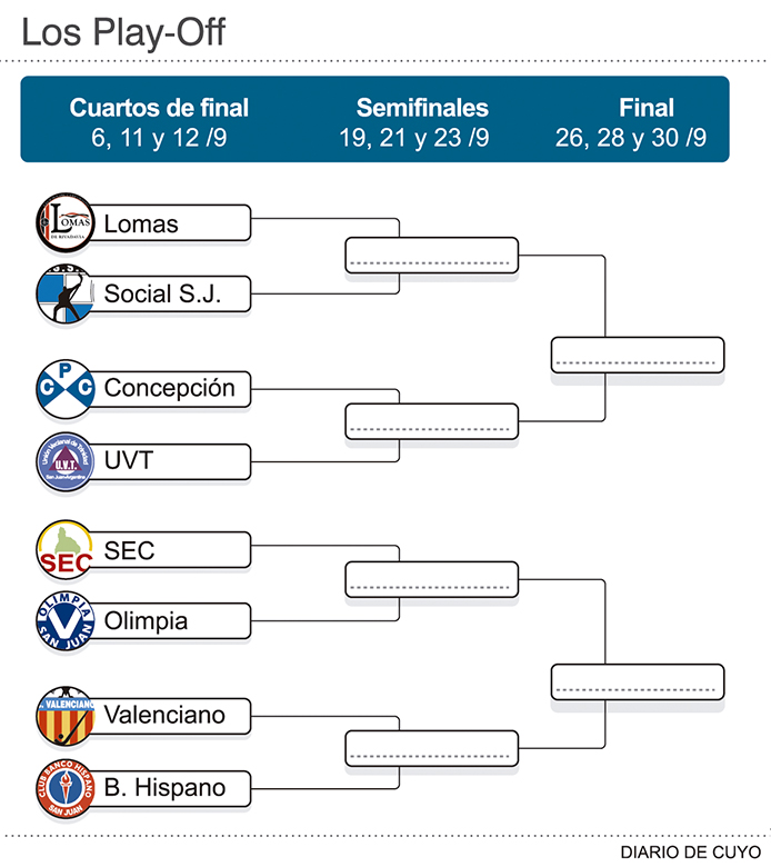 Los cruces serán: Lomas vs. Social; SEC vs. Olimpia; Valenciano vs. Hispano; y Concepción vs. UVT.