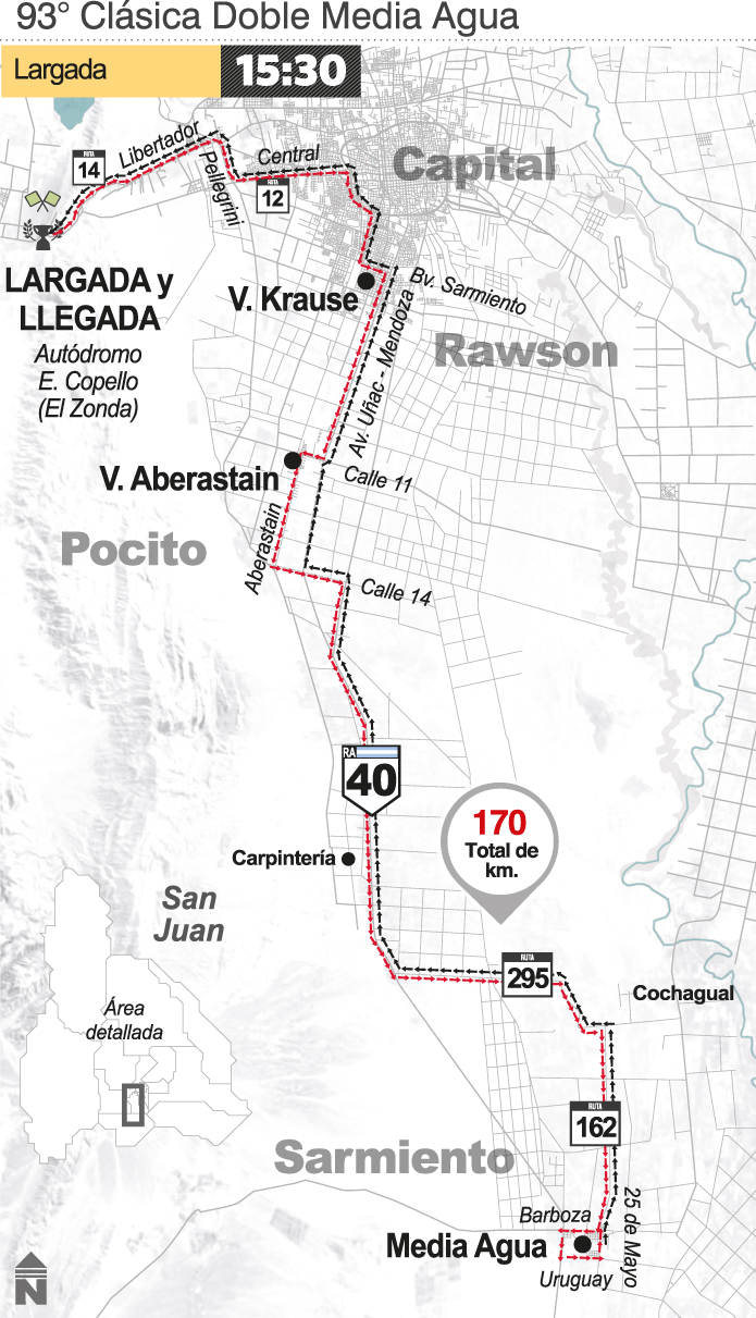 Como ocurre con las pruebas durante la pandemia del Covid-19, tendrá arranque y final en un autódromo donde se realiza la "burbuja sanitaria" para evitar contagios y aglomeración de gente, en este caso en "El Zonda-Eduardo Copello", en Rivadavia. En el medio, el pelotón que tendrá lo mejor del país con más de 160 pedaleros irá hasta el sur de la provincia. Luego, ya en el tramo decisivo de la carrera, se darán cinco vueltas al trazado rivadaviense para completar los 170 kilómetros que pergeñó el Club Independiente, que en esta ocasión le rinde homenaje a Oscar "Pico" Bonomo.