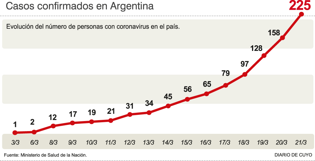 De acuerdo al último reporte oficial, el número de casos confirmados de Covid-19 en Argentina ascienden a 225.