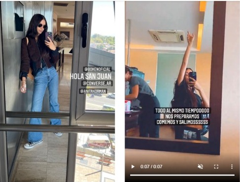 Más tarde subió una historia a Instagram mostrando los preparativos previos a salir a grabar en medio del almuerzo. "Todo al mismo tiempo, nos preparamos, comemos y salimos", escribió.