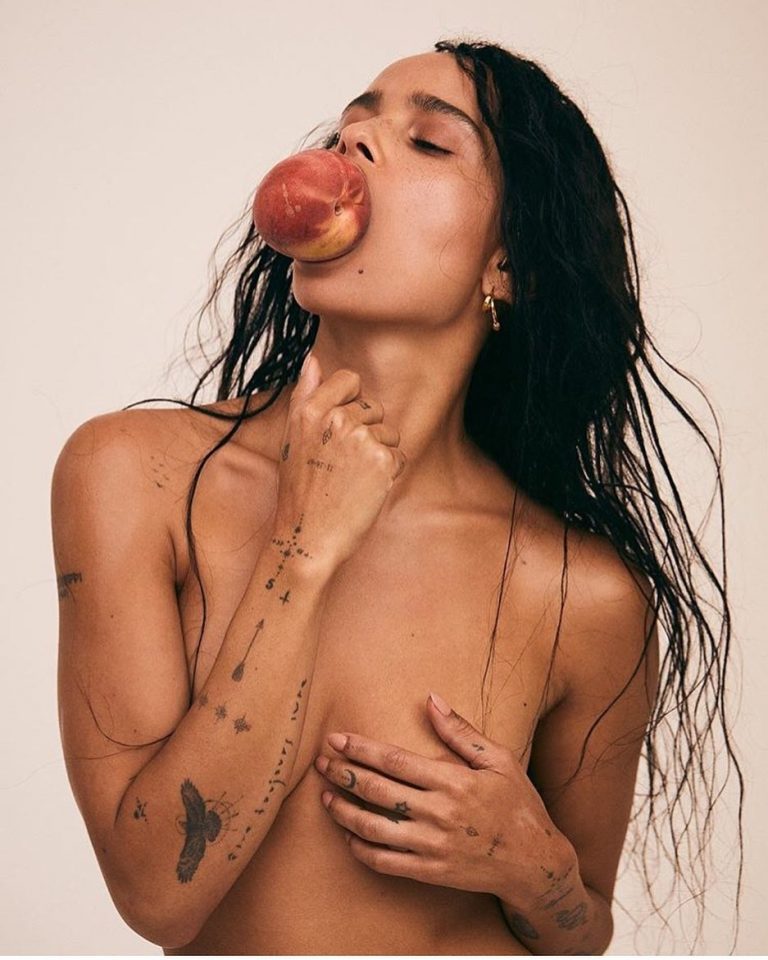 Zoë Kravitz, la hija de Lenny Kravitz y intérprete de “Gatúbela” en “The Batman” que coprotagonizará con Robert Pattinson, cautivó a sus más de 5 millones de seguidores con una foto sensual en la que se la puede ver comiendo un durazno totalmente desnuda.